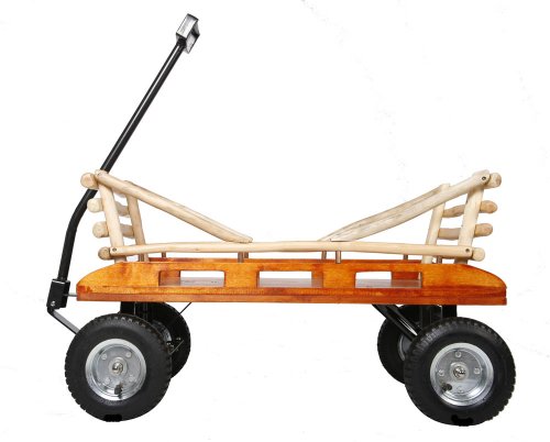 The Butterfly is a real wagon, made of real wood and ready for pretty much anything. It's designed by a Colorado wagon maker, and crafted by hand of the finest materials. The double seats are hand-carved willow with a comfy tilted backrest; the deck is 5/8" thick birch planks with tongue-and-groove joints. Whether you are hauling children, gear or friends, the Butterfly is a multi-purpose, multi-season workhorse. A marine-grade finish protects the wood, screws and bolts are stainless steel, the undercarriage is powder-coated steel, and the heavy-duty wheels are inflated. Meets all USC and ASTM child safety standards. Simple assembly required. Holds up to 300 pounds.