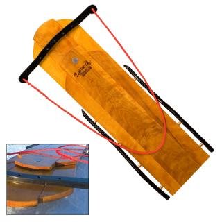 Extraordinary -- beautiful, unique, playful, the Mountain Boy Sledworks Elegant Flyer Sled is built like a piece of fine furniture that trumps everything else on the sledding hill. Each is made of fine figured woods in the Silverton workshop, and signed/numbered by the sledmaker. Constructed of curly maple at the deck with willow handrails, 3 coats of marine-grade polyurethane protect for a life time of fun. Custom-molded plastic skids give flotation in soft snow and precise tracking on hardpack, so that the pivot-front can make slalom turns, 180-degree turns, and hockey stops.
